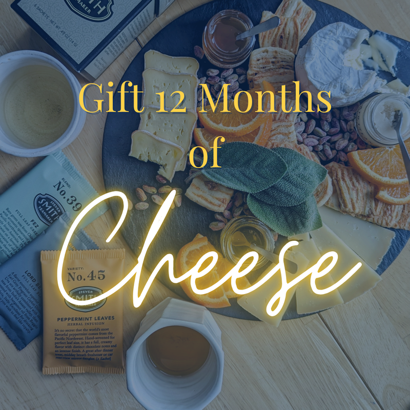 Prepay for twelve months of a curated, rotating selection of 3 American artisan cheeses per month (about 1.5 pounds), with the option to add pairings and crackers.